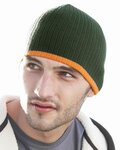 Stylish knit cap with contrasting stripe at bottom.