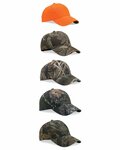 Structured, six-panel, mid-profile cap with pre-curved visor and sewn eyelets in various camo prints.