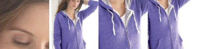 - Unlined hood with contrast drawcord
