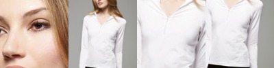 - Double-needle stitching and banded collar with stays