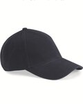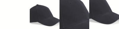 Flexible twill cap is structured with buckram backing.