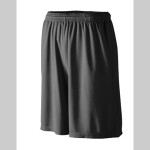 100% polyester wicking mesh * Wicks moisture away from the body * Full-cut * Covered elastic waistband with inside drawcord * Side-seam pockets * 9-inch inseam * Double-needle hemmed bottom