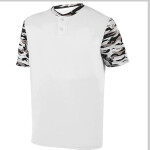 100% polyester wicking knit * 100% polyester wicking printed knit collar and sleeves * Wicks moisture away from the body * Pad print label * Self-fabric collar * Set-in sleeves * Two-button placket * Double-needle hemmed sleeves and bottom