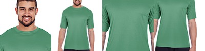 100% polyester heathered wicking knit ; Wicks moisture away from the body ; Pad print label ; Self-fabric crew neck collar ; Set-in sleeves ; Double-needle hemmed bottom and sleeve.;