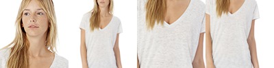 50% cotton, 50% polyester; Fitted silhouette; V-neck; Slight high-low hem;
