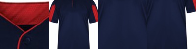 - Two-button placket with piping detail