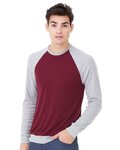 Retail fit Tear-away label Contrast raglan sleeves and neck trim Side seamed Solid Colorblock: 3.6-ounce, 52/48 Airlume combed and ring spun cotton/poly, 40 singles Black Heather: 90/10 Airlume combed and ring spun cotton/poly Marble Colorblock: 4-ounce, 91/9 poly/Airlume combed and ring spun cotton, 32 singles Triblend Colorblock: 3.8-ounce, 50/25/25 poly/Airlume combed and ring spun cotton/rayon, 40 singles