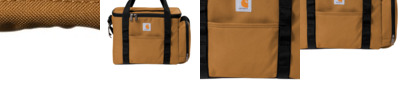 This seam-sealed, insulated and water-repellent cooler holds up to 36 cans. With its attached bottle opener and exterior daisy chain to secure additional gear, it's the ultimate cooler for a barbeque. A side compartment keeps condiments and utensils separated. 600D rugged polyester Rain Defender ® durable water repellent (DWR) Seam-sealed to prevent ice from leaking as it melts Fully insulated main compartment can hold up to 36 12-ounce cans Insulated side compartment to separate food Top haul handles with padded keeper Quick-access lid on top into main compartment Front zippered pocket Daisy chain to hang additional gear Includes a metal bottle opener Adjustable shoulder strap with pad Large rear exterior slash pocket Carhartt label sewn on front Dimensions: 11'h x 15'w x 9'l