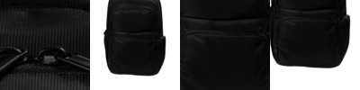 500D poly Laser cut front panel to attach light items Adjustable sternum strap Spacious main compartment Easy-access padded laptop/tablet compartment Interior organization panel with zippered front and key ring Integrated padded luggage trolley pass through on back Zippered side pockets with fabric gussets Ergonomic adjustable shoulder straps Air mesh padded back panel with hidden passport pocket Coated grab handles Dimensions: 19.2'h x 10.9'w; Approx. 1,465 cubic inches Capacity: 1,342.5 cu. in./22 L Weight: 2.01 lbs./0.91 kgs Laptop sleeve: 14.5'h x 10.9'w; fits most 15' laptops Note: Bags not intended for use by children 12 and under.