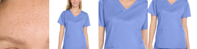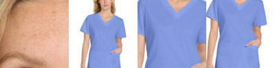 65/35 poly/cotton Mechanical stretch V-neckline Shoulder badge loop Left chest pocket with pen slot Side vents Wink heat transfer logo at left hem Classic fit