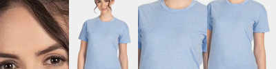 4.3-ounce, 60/40 combed ring spun cotton/poly, 32 singles CVC blend 1x1 rib knit neck Shoulder to shoulder taping Tear-away label Side seamed
