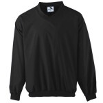 Heavyweight 100% polyester brushed tricot * Center front zipper * Raglan sleeves * Contrast color inserts on front with white accent piping * Front seam pockets * Elastic cuffs * Open bottom (Youth has side elastic) * Machine-washable *