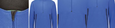 100% polyester heathered wicking knit top body, collar and sleeves * 100% polyester wicking knit solid bottom body * Wicks moisture * Tag-free label * Quarter zip pullover style * Set-in sleeves