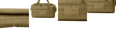 Compact-yet tactical feature-heavy-this gear bag is rugged and functional. Loop panels stand at the ready to display patches and badges. 600D polyester canvas D-shaped, zippered main compartment Interior storage pockets Web carry handles with padded handle wrap Adjustable, removable, padded shoulder strap Side daisy chains Front zippered pocket with daisy chain and loop panel for badges and patches Dimensions: 10'h x 16'l x 9.5'd Note: Bags not intended for use by children 12 and under.