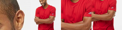 100% polyester heathered wicking knit * Wicks moisture * Tag-free label * Crew neck * Set-in sleeves