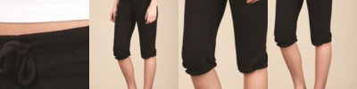 Contoured fit capris have a roll-down waist and slightly flared leg openings.