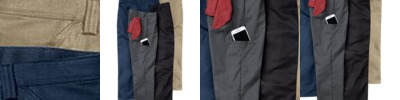 • Cell phone pocket with hidden snap on right leg
