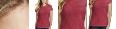 This perfect triblend tee fits closer to the body for a form-flattering silhouette. 4.5-ounce (153 GSM) 50/25/25 polyester/combed ring spun cotton/rayon, 32 singles Form fitting 1x1 rib knit neck Tear-away label Shoulder to shoulder taping Size up for a less fitted look