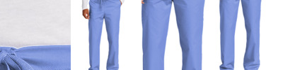65/35 poly/cotton Mechanical stretch Flat front full drawstring and half-back elastic waistband Front slash pockets Right side cargo pocket Single back pocket Moderate flare leg with side vents 33-inch inseam Wink heat transfer logo at cargo pocket Classic fit