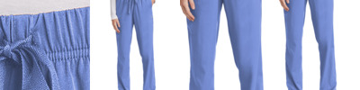 96/4 rayon/spandex Round neckline Wink heat transfer logo at hem Trim fit to easily layer under scrub tops without extra bulk