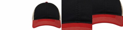 - Heather Tan/Black with mesh back is 55/35/10 acrylic/polyester/wool