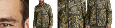 Modern, lightweight and ideal as a work-to-play outer layer for those who love hiking and time in the outdoors. Brushed fleece interior is perfect for layering over a tee on a cool spring morning or crisp fall day. 8.4-ounce, 100% polyester with TPU laminate and brushed fleece interior Durable water repellent (DWR) finish 5K/5K weather protection Realtree EDGE ® print Chest pocket and zippered hand pockets with molded zippers and brushed metal pulls Exterior embossed faux leather tab at hem
