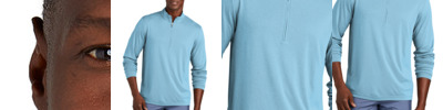 A fashionable sweater alternative, youâ¿¿ll always look pulled together and sophisticated in this comfortable 1/2-zip that features a slub texture knit and sun-bleached wash. 11.7-ounce, 45/33/22 cotton/pima cotton/ Tencel Lyocell Pigment garment overdyed fabrication Mockneck with 1/2-zip placket Side panels built-in for stretch Rib knit cuff and hem Distinctive contrast stitching Embroidered Marlin at center back neck Cut-out Marlin on zipper pull