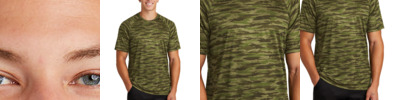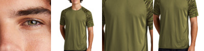 Step up your game in this moisture-wicking tee that delivers UV protection and features our unique drift camo print and bold colorblocking. 3.8-ounce, 100% polyester Color-locking PosiCharge technology (solid body only) UPF rating of 30 Tear-away removable label Raglan sleeves