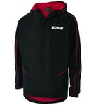 Micron(tm) polyester is a lightweight, wind/water resistant fabric * Micromesh lined nylon body & hood * Woven label * Quarter zip pullover style * Adjustable mesh lined hood with eyelets and concealed cord locks * Back vent with adjustable closure for full decoration access * Front zippered pockets * Half-elastic cuffs * Open bottom with adjustable elastic hidden drawcord * Dropped tail * Water-resistant