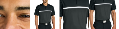 Built from at least 75% recycled polyester fabric, Nike scores a sustainable victory with this polo that stands out with colorblocking on the front and Dri-FIT moisture management technology. Details include an anti-curl flat knit collar, two-button placket with dyed-to-match buttons and rolled-forward shoulder seams for easy movement. A contrast heat transfer Swoosh logo is on the left sleeve. Made of 4-ounce, 100% polyester Dri-FIT fabric.**