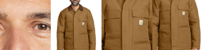 Gear up for the cold with Carhartt's Duck Traditional Coat featuring a quilted nylon lining with arctic-weight polyester insulation. 12-ounce, firm hand, 100% ring spun cotton duck canvas Wind Fighter ® technology tames wind Quilted nylon lining for easy on and off; arctic-weight 100% polyester insulation for ultimate warmth Corduroy-trimmed collar Two-way brass center-front zipper plus storm flap with hook and loop closure Two chest pockets with flaps and hook and loop closures Two interior pockets Two large lower-front pockets Articulated elbows Inner sleeve, rib knit storm cuffs Split-back construction Pleated bi-swing back Carhartt-strong, triple-stitched main seams Carhartt label sewn on left chest pocket Carhartt Warmth Rating Earned: Level 3â¿¿Warmest Loose fit