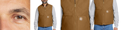 A great extra layer, Carhartt's Duck Vest is made of cotton duck and insulated for warmth. 12-ounce, firm hand, 100% ring spun cotton duck canvas Wind Fighter ® technology tames wind Nylon lining quilted to arctic-weight 100% polyester insulation Rib knit collar Brass center-front zipper with interior storm flap Interior pocket with hook and loop closure Two large insulated lower-front pockets Locker loop Drop tail hem Carhartt-strong, triple-stitched main seams Carhartt label sewn on left pocket Relaxed fit