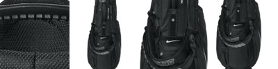 100% polyester Lightweight, durable aluminum stand construction Integrated top handle 14-way divider 7 pockets: waterproof fleece-lined valuable pocket, water bottle pockets, full-length apparel and glove pockets, range finder/GPS pocket and insulated cooler pocket Detachable Nike Air Max dual straps Cart-friendly strap-through design Integrated tee holder, pen/pencil sleeves Hook and loop glove patch Towel ring Utility web to hold accessories Umbrella sleeve Water-resistant rain hood included Removable zippered ball pocket with mesh gusset Contrast heat transfer Swoosh logos Dimensions: 36'h x 15.1'w x 10.6'd Capacity: 5,762 cu. in./94.4 L Weight: 5.28 lbs./2.39 kg Note: Bags not intended for use by children 12 and under.