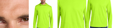 Fend off the rays when the sun is fierce. This lightweight, UPF-rated tee is built to fight sweat and odor no matter where your work takes you. 4-ounce, 100% polyester jersey Sun Defender UPF 50+ UV protection Carhartt Force ® works harder to fight sweat, dry fast and stop odor FastDry ® technology wicks away sweat to keep you cool Three-panel hood with front neck coverage Tagless neck label Carhartt label sewn on left hem Dyed-to-match Carhartt logo on left sleeve (Brite Lime has Asphalt Grey logo) Thumbholes for sun protection on hands Large front pocket Relaxed fit