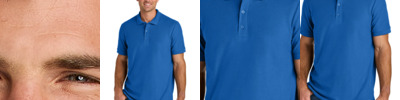 6.5-ounce, 100% ring spun cotton 90/10 ring spun cotton/poly (Ring Spun Sport Grey) Contoured welt collar and cuffs Rolled forward, top-stitched shoulders Clean-finished placket Dyed-to-match buttons Modern classic fit, side seamed Side vents Recycled, high-performing black tear-away label
