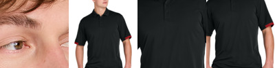 4.4-ounce, 100% recycled polyester interlock with PosiCharge technology body 4.1-ounce, 100% recycled polyester ultra-fine flat back mesh with PosiCharge technology This product's carbon footprint has been measured and reduced through a combination of preferred materials and investing in carbon offset projects through the ClimeCo Certified Product Program Moisture-wicking Odor-resistant Self-fabric collar Self-fabric neck tape Mesh back panel, under arm inserts, and colorblocked mesh sleeve insets 3-button placket Dyed-to-match buttons Forward shoulder seams Tear-away label A C-FREE ® Product