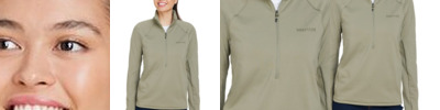 100% polyester fleece Warm and lightweight Repreve® Recycled 100-weight fleece Half-zip pullover style Elastic bound cuffs and hem
