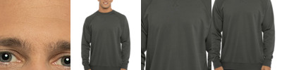 4.3-ounce, 100% combed ring spun cotton, 32 singles 90/10 cotton/polyester, 32 singles (Heather Gray) 1x1 rib knit crewneck collar and cuffs Shoulder to shoulder taping Tear-away label Side seamed 1x1 rib knit cuffs