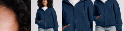 12-ounce, 69/31 cotton/polyester, 3-end fleece 65/35 cotton/polyester (Athletic Heather) 100% cotton face Made with sustainably sourced USA-grown cotton Durable, pill-resistant Double-needle coverstitching on neck, armholes and hem One-ply hood with grommets Dyed-to-match tipped and knotted drawcords 1x1 rib knit cuffs and hem Aluminum zipper Front pouch pockets Tear-away label