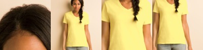 preshrunk 100% cotton jersey knit • 5.3 oz. • missy contoured silhouette with side seams • 1/2" mitered v-neck collar • taped neck and shoulders • cap sleeves • double-needle sleeve and bottom hems • tear-away label • Sizes: S-3XL