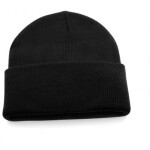 100% acrylic knit beanie; double-layer construction; nine-inch length with three-inch cuff. Solid color knit