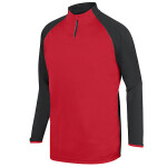 100% polyester knit interlock * Heat sealed label * Contrast color front panel * Pullover style with 1/4 zip and reflective tape * Zipper garage with storm flap * Raglan sleeves * Contrasting spandex bound cuff * Wearer's right side seam hidden possession pocket * Open bottom * Machine washable